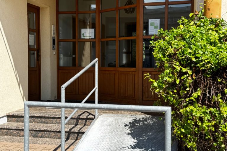 Die Praxis ist stufenlos zu erreichen. Die schwellenlosen und breiten Türen ermöglichen einen Zugang für Patienten in jeder Lebenslage.
